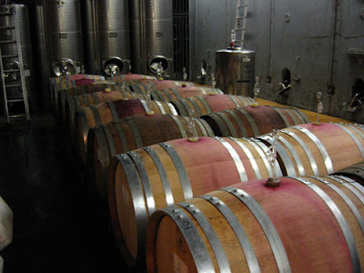 Die watersloten, dat was een ander duidelijk teken dat er gewerkt werd! Ze zaten op de barriques van Dr. Bürklin-Wolf, waarin de pinot noir begonnen was aan de malolactische gisting, maar ook op de grote houten foeders met riesling bij hetzelfde huis. In die foeders heeft de Riesling nog maar net zijn alcoholische gisting afgerond. Koeling van de houten vaten verhindert dat ook de malolactische, of melkzure gisting intreed.