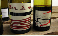 – Een fraaie Gamay van oude stokken, Boa le Rouge 2005, opnieuw van Mérieau. Zeer donker van kleur, in de neus eerst een flinke hoeveelheid luchten van het boerenerf, daarna veel rood en zwart fruit. Tannines aanwezig, maar uiteraard niet overheersend. Een wijn met veel diepte, maar ook licht (al is het alleen al vanwege het alcoholpercentage van 12.5%), geheel passend bij het Bolomey-assortiment. Prijs € 14,80.