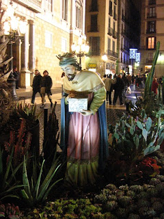 Photo: One of the Three Kings, who in Catalan tradition send their gifts to children on January 6th. This king was part of a Christmas group on Pl. Sant Jaume in Barcelona.